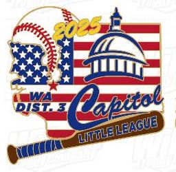 Design the 2026 HAT pin contest open NOW--Submit your design by April 1, 2026Submit via email (attach a pdf or jpg) to [email protected]. Subject 2026 Hat Pin Design.Designer must be:Must be a 2026 Spring playerDesign must include :Capitol Little League and our logoWA District 32026Winner announced on April 15, 2026--receives a $50 Dick's Sporting Goods gift certificate and 10 pins.2018 winner 2019 winner 2020 winner 2021winner